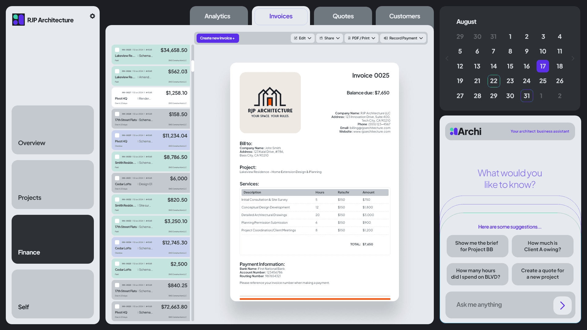 Instead of scattered apps and endless admin, you now have a single place where your work, your finances, and your tasks come together — guided by an assistant that thinks alongside you. Archi doesn’t just help you stay organized; he frees your time, sharpens your focus, and gives you the clarity to grow your business with confidence.
